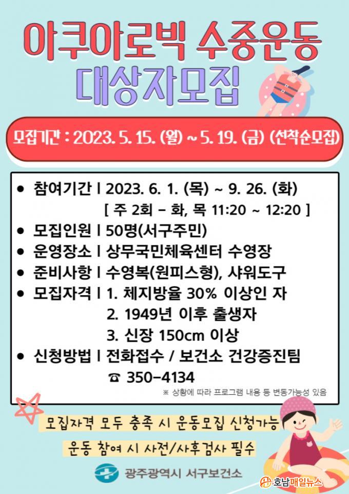 À̹ø ÇÁ·Î±×·¥Àº Áö³ 3¿ù ¸» °³°üÇÑ »ó¹«±¹¹ÎüÀ°¼¾ÅÍ¿Í Çù¾÷ÇÏ¿© 1Ãþ ½Ç³»¼ö¿µÀå¿¡¼ ¿î¿µµÉ ¿¹Á¤À̸ç 6¿ù1ÀϺÎÅÍ 9¿ù26ÀϱîÁö ÁÖ 2ȸ(È,¸ñ / 11:20~12:20) 4°³¿ù°£ ÁøÇàµÈ´Ù. ¸ðÁý´ë»óÀº üÁö¹æ·ü 30% ÀÌ»óÀÎ ¼±¸ÁÖ¹ÎÀ¸·Î ¼±¸º¸°Ç¼Ò °Ç°ÁõÁøÆÀ(350-4134)À¸·Î ÀüÈ ½ÅûÇÏ¸é µÈ´Ù.