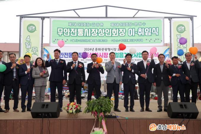 ÇÑÆí, À̳¯ Ư¼ºÈ½ÃÀå ù°ÉÀ½±â¹Ý»ç¾÷ ¼±Æ÷½Ä¿¡ ÀÌ¾î ¹«¾ÈÀüÅë½ÃÀå»óÀÎȸ Á¦3´ë ¹®Á¤¼ö ȸÀå ÃëÀӽĵµ ¿·Á »óÀÎȸ ȸ¿ø ¸ðµÎ°¡ ÇÕ½ÉÇØ ¹®È°ü±¤Çü½ÃÀåÀ¸·Î µµ¾àÇÒ ¼ö ÀÖµµ·Ï ´Ù½Ã Çѹø ´õ ÀÇÁö¸¦ ´ÙÁö´Â °è±â¸¦ ¸¶·ÃÇß´Ù.