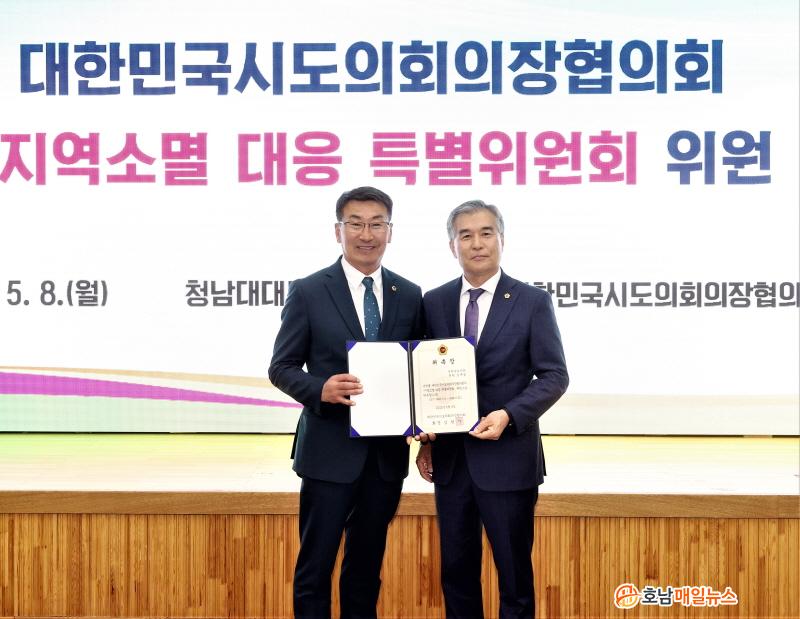 ´ëÇѹα¹½ÃµµÀÇȸÀÇÀåÇùÀÇȸ(ȸÀå ±èÇö±â ¼¿ïƯº°½ÃÀÇȸÀÇÀå)´Â Áö³ 8ÀÏ, ÃæºÏ ûÁֽà ¼ÒÀç û³²´ë ´ëÅë·É±â³ä°ü¿¡¼ Áö¿ª¼Ò¸ê ´ëÀÀ Ưº°À§¿øÈ¸ À§¿ø À§Ã˽ÄÀ» °®°í °¢ ½ÃµµÀÇȸ ÀÇ¿ø 1¸í¿¡°Ô À§ÃËÀåÀ» ¼ö¿©Çß´Ù.