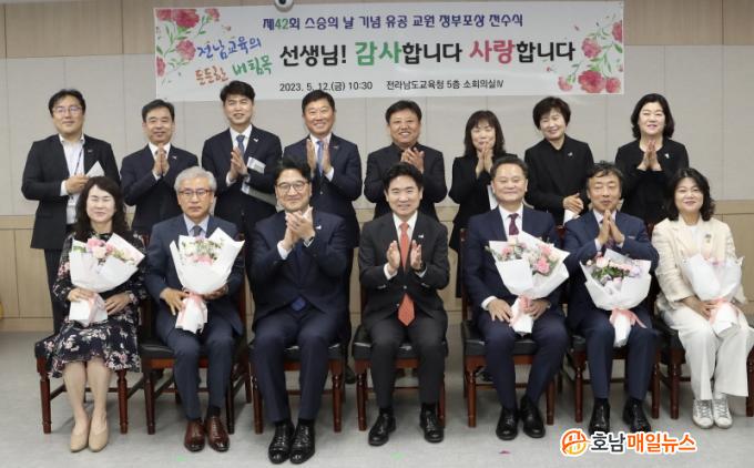 ±è´ëÁß Àü³²±³À°°¨Àº ¼ö»óÀڵ鿡°Ô ±×°£ÀÇ ±³À°¿¡ ´ëÇÑ Çå½Å°ú ³ë°í¿¡ Á¸°æ°ú °¨»çÀÇ ¸¶À½À» ÀüÇϸç, ¡°¾ÕÀ¸·Îµµ ¡®ÇÔ²² ¿©´Â ¹Ì·¡ źźÇÑ Àü³²±³À°¡¯ ¹ßÀüÀ» À§ÇØ ¾Ö½áÁÙ °Í.¡±À» ´çºÎÇß´Ù.