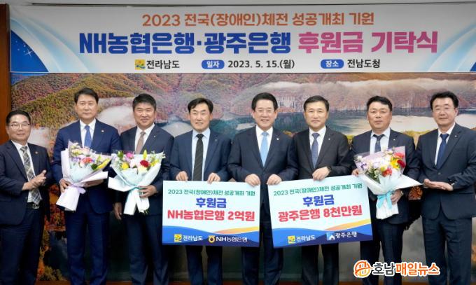 ³óÇùÀºÇàÀÌ 2¾ï ¿ø, ±¤ÁÖÀºÇàÀÌ 8õ¸¸ ¿øÀ» ±âŹÇÑ ÈÄ¿ø±ÝÀº Àü±¹Ã¼Àü°ú Àü±¹Àå¾ÖÀÎüÀü °³¡¤Æóȸ½Ä °ü¶÷°´ ÆíÀÇ¿ëǰ, üÀü Âü°¡¼±¼ö Áö¿ø±Ý, üÀ°ÀÎÀç À°¼º ÀåÇÐ±Ý µî¿¡ »ç¿ëµÉ ¿¹Á¤ÀÌ´Ù.