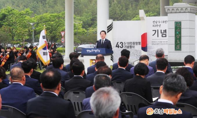 ÀÌ¾î ¡°´ëÇѹα¹ ¹ÎÁÖÁÖÀǸ¦ À§ÇØ ¸ñ¼ûÀ» Ãʰ³¿Í °°ÀÌ ¹ÙÄ£ ±¤ÁÖ¡¤Àü³²ÀÇ ¼ö¸¹Àº ¹ÎÁÖ¿»ç¿Í ¾Ö±¹ ½Ã¡¤µµ¹ÎÀÇ °Å·èÇÑ Èñ»ýÀ» °¡½¿ ±íÀÌ ±â¾ïÇÏ¸ç ¡®¿À¿ùÀÇ Á¤½ÅÀ», ¿À´ÃÀÇ Á¤ÀǷΡ¯ ½ÂȽÃŰ°Ú´Ù¡±°í ´ÙÁüÇß´Ù.