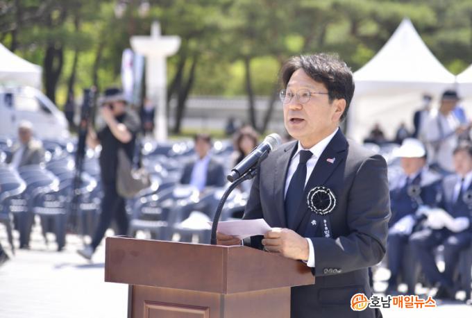 ° ½ÃÀåÀº À̳¯ ±¹¸³5¡¤18¹ÎÁÖ¹¦Áö¿¡¼ ¿¸° ¡®Á¦43ÁÖ³â 5¡¤18¹ÎÁÖȿ Ã߸ðÁ¦¡¯¿¡¼ Ã߸ð»ç¸¦ ÅëÇØ ¡°5¡¤18 ¹ÎÁÖȿ 43ÁÖ³âÀ» ¸Â¾Ò´Ù. ¹àÇô¾ß ÇÒ Áø½ÇÀÌ ¾ÆÁ÷µµ ¿©ÀüÈ÷ ¸¹Àºµ¥ ½Ã°£ÀÌ ÂüÀ¸·Î ¸¹ÀÌ Èê·¶´Ù. ¿À¿ù¿µ·É²² ÇѾø´Â Á˽º·¯¿òÀ» ´À³¤´Ù¡±¸ç À̰°ÀÌ ¸»Çß´Ù.