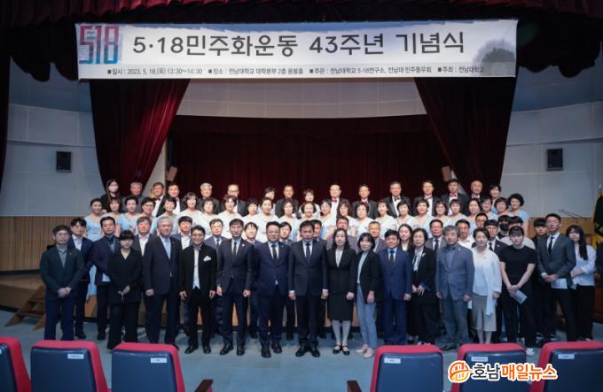 Àü³²´ë 5.18¿¬±¸¼Ò¿Í ¹ÎÁÖµ¿¿ìȸ°¡ °øµ¿ ÁÖ°üÇÑ À̳¯ ±â³ä½Ä¿¡´Â Á¤¼ºÅà Àü³²´ë ÃÑÀåÀ» ºñ·ÔÇÑ ±³¼ö, ÇлýÀ» ºñ·ÔÇØ Á¶¼ºÈñ Ãѵ¿Ã¢È¸Àå°ú ÀÓ¿ø, À§°æÁ¾ ¹ÎÁÖµ¿¿ìȸ ȸÀå°ú ȸ¿ø µî 200¿© ¸íÀÌ Âü¼®Çß´Ù.