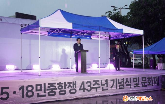 ±â³ä½ÄÀº ¹ÚÈ«·ü ¸ñÆ÷½ÃÀå, ÇѺÀö ¸ñÆ÷5.18¹ÎÁßÇ×Àï 43ÁÖ³â Çà»çÀ§¿øÀåÀ» ºñ·ÔÇØ ±¹È¸ÀÇ¿ø, µµ¡¤½ÃÀÇ¿ø, 5.18¹ÎÁÖÀ¯°øÀÚ ¹× À¯Á· µîÀÌ Âü¼®ÇØ ÁøÇàµÆ´Ù.