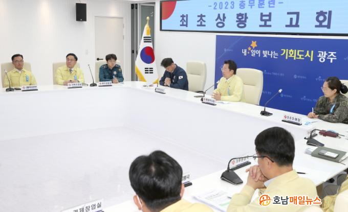 ¹®¿µÈÆ ÇàÁ¤ºÎ½ÃÀåÀº À̳¯ ÃÖÃÊ»óȲº¸°íȸ¿¡¼ ¡°°ø¹«¿øµéÀÇ ºñ»ó½Ã ÀÓ¹«¼öÇà´É·Â°ú ½Ã¹ÎµéÀÇ À§±â»óȲ ´ëó´É·ÂÀÇ Á߿伺ÀÌ ¾î´À ¶§º¸´Ù Àý½ÇÇÑ ½ÃÁ¡ÀÌ´Ù¡±¸ç ¡°À̹ø Ãæ¹«ÈÆ·ÃÀ» ÅëÇØ ±¤ÁÖ½ÃÀÇ ºñ»ó»óȲ¶§ ÀÓ¹«¼öÇà´É·ÂÀ» Á¡°ËÇϰí, À§±â»óȲ¿¡ ´Éµ¿ÀûÀ¸·Î ´ëóÇÒ ¼ö ÀÖ´Â ´É·ÂÀ» Ű¿ì´Â °è±â·Î »ï¾Æ¾ß ÇÑ´Ù¡±°í °Á¶Çß´Ù.