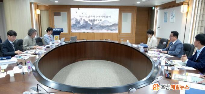 ¿ÃÇØ ¼¼ ¹øÂ°¸¦ ¸Â´Â 2023 Àü³²±¹Á¦¼ö¹¬ºñ¿£³¯·¹´Â ¡®¹°µå´Â »ê, ¸ØÃç¼± ¹°- ¼þ°íÇÑ Á¶È ¼Ó¿¡¼¡¯¸¦ ÁÖÁ¦·Î ¿À´Â 9¿ù 1ÀϺÎÅÍ 10¿ù 31ÀϱîÁö µÎ ´Þ µ¿¾È ¸ñÆ÷¹®È¿¹¼úȸ°ü°ú Áøµµ ¿î¸²»ê¹æ ÀÏ¿ø¿¡¼ ÆîÃÄÁø´Ù.