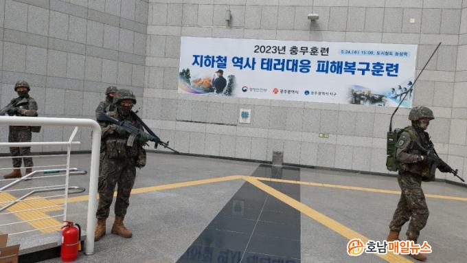 ±¤ÁÖ½Ã¿Í ±¤ÁÖ ¼±¸°¡ °øµ¿ÁÖ°üÀ¸·Î ½Ç½ÃÇÑ À̹ø ÈÆ·ÃÀº ½Ã¹ÎÀÌ ÀÚÁÖ ÀÌ¿ëÇÏ´Â ´ÙÁßÀÌ¿ë½Ã¼³ÀÎ ÁöÇÏö ¿ª»ç¸¦ ´ë»óÀ¸·Î Æø¹ß¹°À» ÀåÂøÇÑ µå·Ð Å×·¯°¡ ¹ß»ýÇØ Æø¹ß·Î ÀÎÇÑ ÀθíÇÇÇØ¿Í ÈÀç°¡ ¹ß»ýÇÑ »óȲÀ» °¡Á¤ÇØ ÁøÇàµÆ´Ù. ƯÈ÷, ¼±¸, ±¤ÁÖ°æÂûû, ±¤ÁÖ¼ºÎ°æÂû¼, 503º¸º´¿©´Ü(5´ë´ë), ¼ºÎ¼Ò¹æ¼, ±¤ÁÖµµ½Ãöµµ°ø»ç, ¹Î°£µå·Ð¿î¿ë´Ü µî °ü°èÀÚ 300¿© ¸íÀÌ Âü¿©ÇØ ¡ãÅ×·¯ ¹ß»ý ¹× Ãʱâ´ëÀÀ ¡ãÈÀçÁø¾Ð Ȱµ¿ ¹× ÀÎ¸í±¸Á¶ ¡ã½Ã¼³¹° ±ä±Þº¹±¸ µîÀ» ½Ç½ÃÇß´Ù.