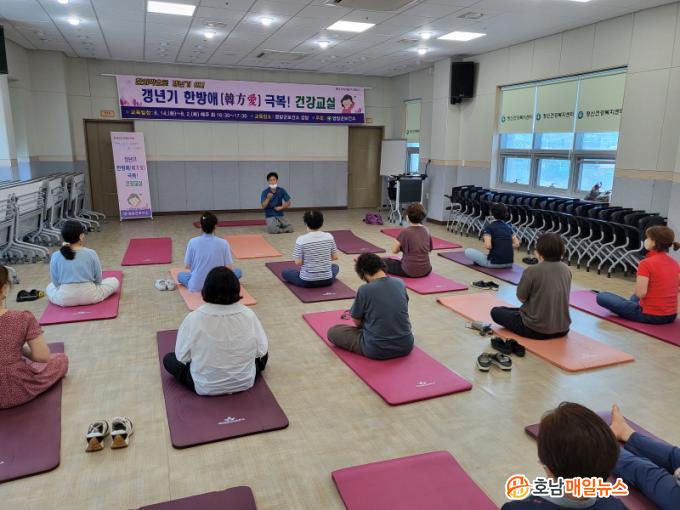 °»³â±â Áõ»óÀÌ ÀÖ´Â Áö¿ªÁÖ¹ÎÀÌ °Ç°±³½Ç¿¡ Âü¿©ÇÒ ¼ö ÀÖ´Ù. ¼±Âø¼ø ¸ðÁý¿¡ 40~65¼¼ ÁÖ¹ÎÀ» ¿ì¼± ¼±¹ßÇÑ´Ù. ¼ö¾÷Àº 6ÁÖ µ¿¾È ¸ÅÁÖ ¼ö¿äÀÏ ¿¸°´Ù. °Ç°±³½Ç Âü¿© ½Åû µî ÀÚ¼¼ÇÑ ¾È³»´Â ¿µ¾Ï±ºº¸°Ç¼Ò(061-470-6556)¿¡¼ ÇÑ´Ù.