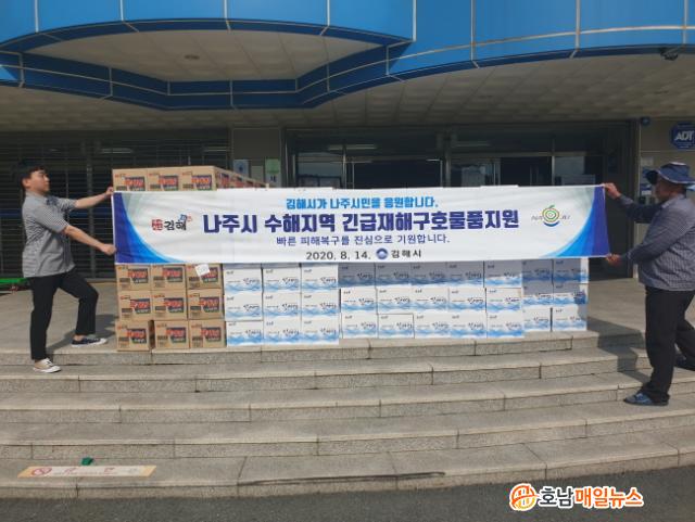 ±èÇØ½Ãµµ ¶ó¸é 2400°³¡¤»ý¼ö(±èÇØ ¼öµ¾¹° ¡®Âù»õ¹Ì¡¯) 6000º´¡¤Å©¸°랲 200¼¼Æ® µî 660¸¸¿ø »ó´ç °£½Ä¡¤»ýȰ¿ëǰÀ» ÅëÇØ À§·Î¿Í ÀÀ¿øÀÇ ¸Þ½ÃÁö¸¦ ÀüÇØ¿Ô´Ù.