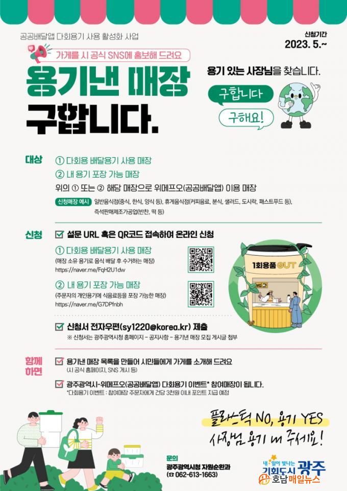 ±¤Áֽô ¡®¿ë±â³½ ¸ÅÀ塯À» ȨÆäÀÌÁö¿Í »çȸ °ü°è¸Á ¼ºñ½º(SNS)¸¦ ÅëÇØ È«º¸ÇÒ ¿¹Á¤ÀÌ´Ù. ¡®¿ë±â³½ ¸ÅÀ塯¿¡ Âü¿©ÇÑ »ç¾÷ÀåÀº ÀÚµ¿À¸·Î ±¤ÁÖ°ø°ø¹è´Þ¾Û ´Ùȸ¿ë±â ±âȹÇà»ç¿¡ Âü¿©ÇÏ°Ô µÈ´Ù.
