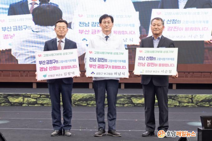 Äڷγª19 ÀÌÈÄ 4³â ¸¸¿¡ ¹æ¹®ÇÑ À̹ø ¡®2023 ±ÝÁ¤»ê¼ºÃàÁ¦¡¯¿¡¼´Â Ưº°ÇÑ À̺¥Æ®·Î ¡®°íÇâ»ç¶û±âºÎÁ¦ ¸±·¹ÀÌ¡¯¸¦ ÁøÇàÇØ, ºÎ»ê ±ÝÁ¤±¸¿Í ÀڸŰῬÀ» ¸Î°í ÀÖ´Â Àü³² °Áø±º, °æ³² »êû±ºÀÇ ºÎÀÚÄ¡´ÜüÀåµéÀÌ °íÇâ»ç¶û±âºÎ±ÝÀ» »óÈ£ ±âºÎÇß´Ù.