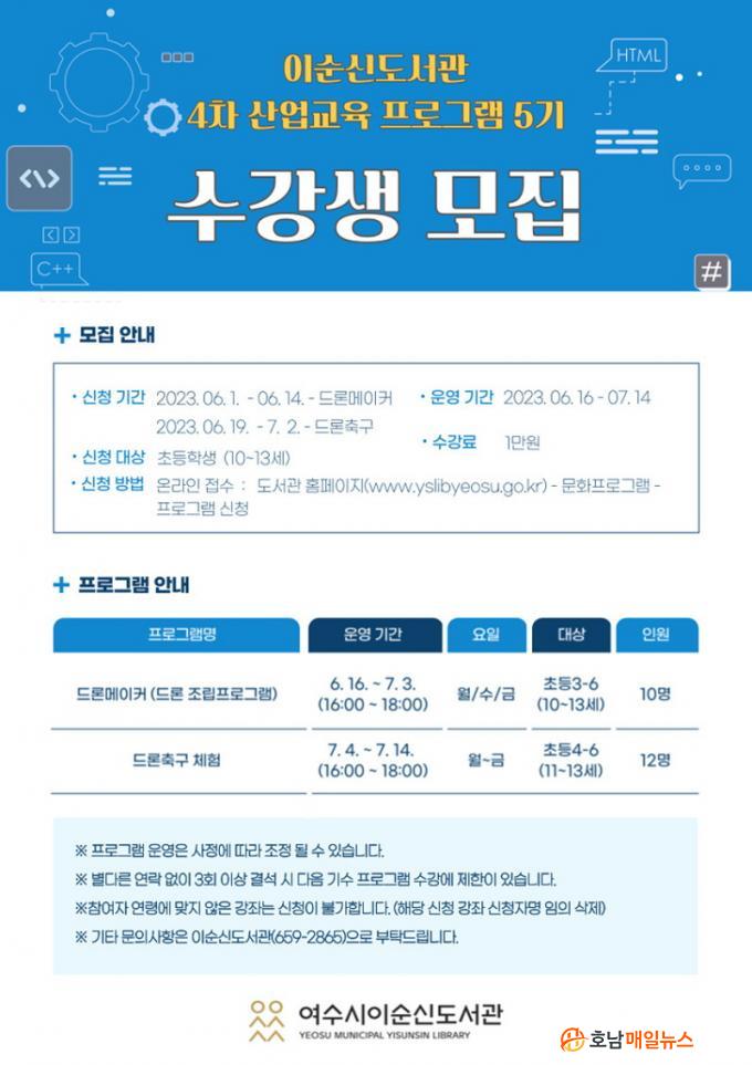 ¿î¿µ ±â°£Àº ¡ãµå·Ð¸ÞÀÌÄ¿´Â 6¿ù 16ÀÏ~7¿ù 3ÀϱîÁö ¡ãµå·ÐÃ౸ üÇèÀº 7¿ù 4ÀÏ~14ÀϱîÁö·Î ¼ö°·á´Â °¢ °Áº° 1¸¸ ¿øÀÌ´Ù. Á¢¼ö´Â °Áº° 10¸í ³»¿Ü ¼±Âø¼øÀ¸·Î, Âü¿© Èñ¸ÁÀÚ´Â ¡ãµå·Ð¸ÞÀÌÄ¿ 6¿ù 1~14ÀϱîÁö ¡ãµå·ÐÃ౸ üÇè 6¿ù 29~7¿ù 2ÀϱîÁö ¿©¼ö½Ã¸³µµ¼°ü ȨÆäÀÌÁö¿¡¼ º»ÀÎ ¶Ç´Â º¸È£ÀÚ°¡ ½ÅûÇÏ¸é µÈ´Ù. ÀÚ¼¼ÇÑ »çÇ×Àº À̼ø½Åµµ¼°ü(¢Ï061-659-2865)À¸·Î ¹®ÀÇÇÏ¸é µÈ´Ù.