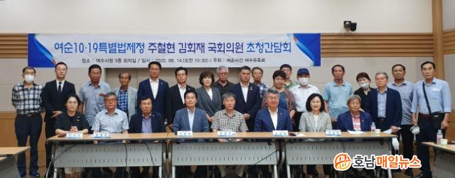 À̳¯ °£´ãȸ¿¡´Â Æø¿°¿¡µµ ºÒ±¸Çϰí Àü¶ó³²µµÀÇȸ ¿©¼ö․¼øÃµ 10․19»ç°Ç Ưº°À§¿øÈ¸ À§¿øÀåÀ» ¸Ã°í ÀÖ´Â °Á¤Èñ ÀÇ¿ø(¿©¼ö6, Àç¼±)À» ºñ·ÔÇØ ¿©¼öÃâ½Å ±èȸÀç‧ÁÖöÇö ±¹È¸ÀÇ¿ø, µµÀÇ¿ø, À¯°¡Á·, ¿©¼ö¼øÃµ 10․19»ç°Ç °ü·Ã ´Üü °ü°èÀÚ µîÀÌ Âü¼®ÇÏ¿© Ưº°¹ý Á¦Á¤¿¡ ´ëÇÑ ¿¸ÁÀÌ ¾ó¸¶³ª Å«Áö »õ»ï ÁüÀÛÄÉ Çß´Ù.
