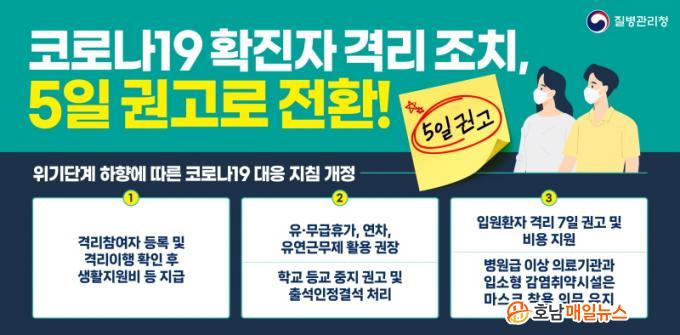 ¶Ç Äڷγª19 È®ÁøÀÚÀÇ 7ÀÏ °Ý¸® Àǹ«°¡ 5ÀÏ ±Ç°í·Î ÀüȯµÊ¿¡ µû¶ó Äڷγª19 È®ÁøÀÚ³ª È®ÁøÀÚ¿Í Á¢ÃË ÈÄ ÀÇ½É Áõ»óÀÌ ÀÖ´Â »ç¶÷Àº ¸¶½ºÅ© Âø¿ë Àǹ«°¡ ¾ø´õ¶óµµ Âø¿ëÇÒ °ÍÀ» Àû±Ø ±Ç°íÇÒ ¹æÄ§ÀÌ´Ù.