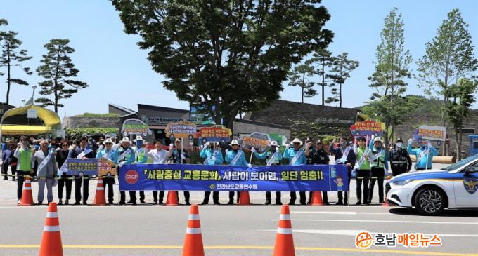 À̳¯ Ä·ÆäÀο¡´Â ¼øÃµ°æÂû¼, ¸ð¹ü¿îÀüÀÚȸ ȸ¿øµé°ú Àü³²±³Å뿬¼ö¿ø Á÷¿ø µî ÃÑ 30¿© ¸íÀÌ Âü¼®Çß´Ù. À̵éÀº ¼øÃµ½Ã¹Î°ú ±¹³»¿Ü¿¡¼ ¹æ¹®ÇÑ Á¤¿ø¹Ú¶÷ȸ °ü±¤°´À» ´ë»óÀ¸·Î Çö¼ö¸·°ú ÇÇÄÏÀ» Ȱ¿ë, »ç¶÷ Áß½ÉÀÇ ¾ÈÀüÇÑ ±³Åë¹®È Á¤Âø°ú ÀÌ·ûÀÚµ¿Â÷ÀÇ ¾ÈÀü¸ð Çʼö Âø¿ëÀ» °Á¶Çϰí È«º¸¹°Ç°(¸¶½ºÅ©)À» ±³Åë¾ÈÀüÀǽÄÀ» °íÃë½ÃÄ×´Ù.