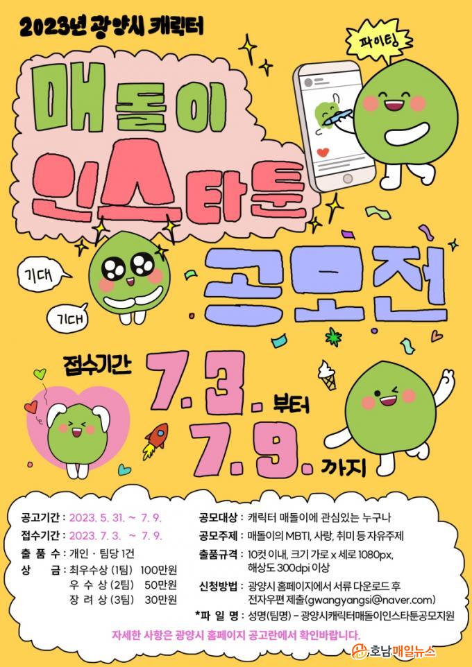 Á¢¼ö ±â°£Àº ¿À´Â 7¿ù 3ÀϺÎÅÍ 9ÀϱîÁö 7Àϰ£À̸ç, ÀÀ¸ð´Â ÇöÀç À¯ÇàÇϰí ÀÖ´Â ÀνºÅ¸Å÷ ±Ô°Ý(10ÄÆ À̳», °¡·Î¡¿¼¼·Î 1,080¡¿1,080px, 300dpi)À» ÁؼöÇØ °³ÀΡ¤ÆÀ´ç 1°ÇÀÇ ÀÛǰÀ» ÀüÀÚ¿ìÆí(gwangyangsi@naver.com)À¸·Î Á¦ÃâÇÏ¸é µÈ´Ù. ´Ü, °ø¸ðÀü¿¡ Ãâǰ․¼ö»óÇÑ ³»¿ªÀÌ ¾ø´Â ¼ø¼ö âÀÛ¹°À̾î¾ß Çϰí, ±Ô°ÝÀ» ÁؼöÇÏÁö ¾ÊÀº ÀÛǰÀº ½É»ç ´ë»ó¿¡¼ Á¦¿ÜµÈ´Ù.