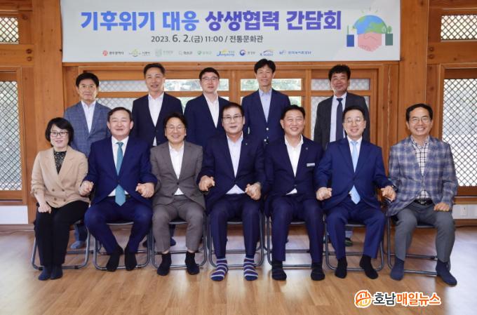 °±âÁ¤ ±¤ÁÖ±¤¿ª½ÃÀåÀº 2ÀÏ µ¿±¸ ÀüÅ빮Ȱü¿¡¼ ¡®±âÈÄÀ§±â ´ëÀÀÀ» À§ÇÑ »ó»ýÇù·Â °£´ãȸ¡¯¸¦ °³ÃÖÇß´Ù. À̳¯ °£´ãȸ¿¡´Â ° ½ÃÀåÀ» ºñ·ÔÇØ ±¤ÁÖ ÀÎÁ¢ 5°³ ½Ã±º ´ëÇ¥·Î À̺´³ë ´ã¾ç±º¼ö, ÀÌ»óÀÍ ÇÔÆò±º¼ö, ±èÇÑÁ¾ À强±º¼ö, °¿µ±¸ ³ªÁֺνÃÀå, ¹Úö¿ø ȼøºÎ±º¼ö µîÀÌ Âü¼®Çß´Ù. ¶Ç ¹°°ü¸® ÇàÁ¤´ç±¹ÀÎ ¿µ»ê°À¯¿ªÈ¯°æÃ» Á¤¼±È ûÀå°ú Çѱ¹¼öÀÚ¿ø°ø»ç, Çѱ¹³ó¾îÃ̰ø»ç °ü°èÀÚ µîµµ ÇÔ²² Çß´Ù.