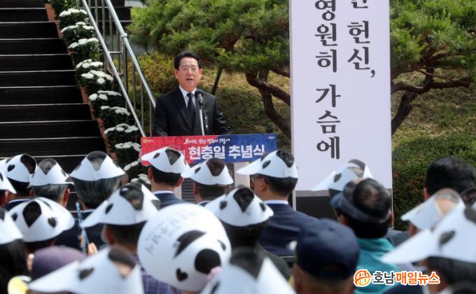 ¡®´ëÇѹα¹À» ÁöÄѳ½ ´ç½ÅÀÇ Èñ»ýÀ» ±â¾ïÇÕ´Ï´Ù¡¯¸¦ ÁÖÁ¦·Î ¿¸° À̳¯ ±â³ä½Ä¿£ ±è¿µ·Ï Àü³²µµÁö»ç, ¸íÇö°ü ÇØ³²±º¼ö, º¸ÈÆ´ÜüÀå µî 500¿© ¸íÀÌ Âü¼®Çß´Ù.