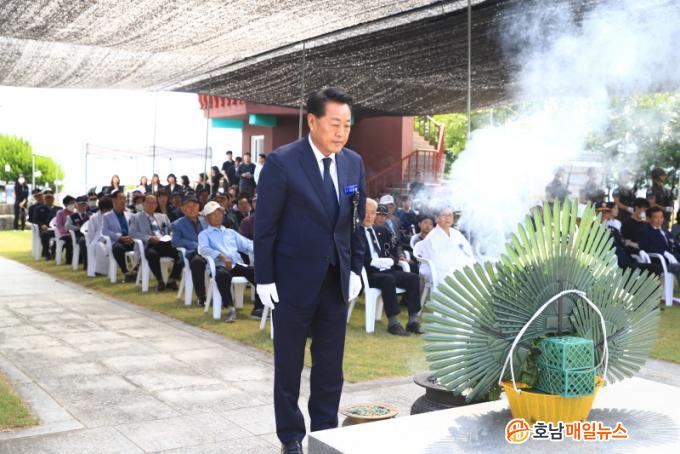 ÀÌ»óö °î¼º±º¼öÀÇ Ãß³ä»ç¿¡ ÀÌ¾î °î¼º±ºÀÇȸ À±¿µ±Ô ÀÇÀå, °î¼º±ºº¸ÈÆ´Üü¿¬ÇÕȸ ÃÖÅÂÈ£ ȸÀåÀÇ Ãßµµ»ç°¡ ¾ö¼÷È÷ ÁøÇàµÆ´Ù. Çå½Ã´Â °î¼º°íµîÇб³ ÇлýȸÀå À̼ҿø ÇлýÀÌ ÀÌÇØÀÎ ½ÃÀÎÀÇ ¡®¿ì¸® ¸ðµÎ ÃʷϺû ÆòȰ¡ µÇ°Ô ÇϼҼ¡¯¸¦ ³¶¼ÛÇϸç Âü¼®ÀÚ Àü¿øÀÇ ÇöÃæÀÏ ³ë·¡·Î Ãß³ä½ÄÀ» ¸¶ÃÆ´Ù.