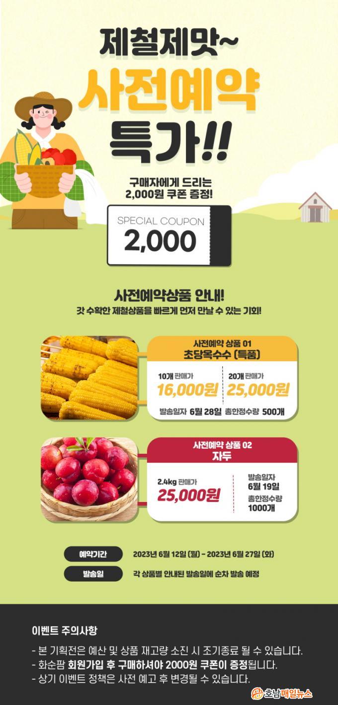 ¢º¼Â(»çÀü ¿¹¾à Ư°¡), 6¿ù 12ÀϺÎÅÍ 28ÀϱîÁö 17Àϰ£ ÃÊ´ç¿Á¼ö¼ö 500°³(16,000¿ø/10°³, 25,000¿ø/20°³), ÀÚµÎ(2.4§¸/25,000¿ø) 1,000¹Ú½º¸¦ »çÀü ¿¹¾à Ư°¡·Î ÆÇ¸ÅÇÑ´Ù.