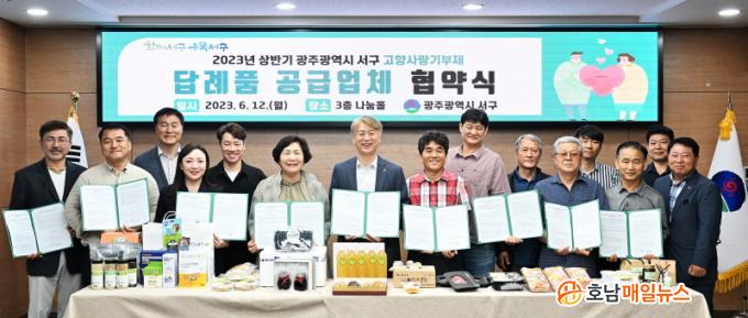 ±èÀ̰ ¼±¸Ã»ÀåÀº ¡°°íÇâ»ç¶û±âºÎÁ¦´Â ±âºÎ±ÝÀ» ÅëÇØ Áö¿ª¹ßÀüÀÇ ¼ÒÁßÇÑ µ¿·ÂÀ» ¸¶·ÃÇÏ´Â ÇÑÆí, ±âºÎÀÚµéÀÌ ¸¸Á·ÇÏ´Â ´ä·Êǰ ¹ß±¼À» ÅëÇØ Áö¿ª°æÁ¦ Ȱ¼ºÈ¸¦ ²ÒÇÒ ¼ö ÀÖ´Ù´Â Á¡¿¡¼ Àǹ̰¡ Å©´Ù¡±¸ç ¡°¿À´Ã Çù¾àÀ» ¸ÎÀº °ø±Þ¾÷ü ´ëÇ¥´ÔµéÀº Áö¿ªÀ» ´ëÇ¥ÇÏ´Â »óǰÀ» »ý»êÇÑ´Ù´Â ÀںνÉÀ» °®°í ÃÖ»óÀÇ Ç°ÁúÀ» À¯ÁöÇϴµ¥ ÃÖ¼±À» ´ÙÇØ´Þ¶ó¡±°í ¸»Çß´Ù.