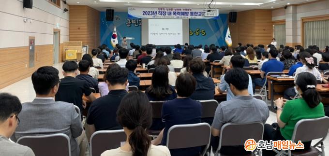 À̹ø ±³À°Àº ¿ÀÀü, ¿ÀÈÄ 2Â÷·Ê¿¡ °ÉÃÄ °ø¹«¿ø»Ó¸¸ ¾Æ´Ï¶ó °ø¹«Á÷°ú ±â°£Á¦±Ù·ÎÀÚ¸¦ Æ÷ÇÔÇÑ 900¿© ¸íÀ» ´ë»óÀ¸·Î ½Ç½ÃµÆ´Ù. °ÀÇ´Â Çѱ¹¾ç¼ºÆòµî±³À°ÁøÈï¿ø Àü¹® °»ç À̼ø½É ¼ÒÀåÀÌ ¸Ã¾ÒÀ¸¸ç ¡ã°ø°øÁ¶Á÷ ¼ºÀÎÁö °¨¼ö¼º°ú Á¶Á÷¹®È ÀÌÇØ, ¡ã°ø°ø±â°ü ³» 4´ë Æø·Â ¹ß»ý ¿¹¹æ ¹æ¹ý, ¡ã¼ºÈñ·Õ°ú ¼ºÆø·Â °ü·Ã ÁÖ¿ä »ç·Ê µîÀ» °ÀÇÇß´Ù.