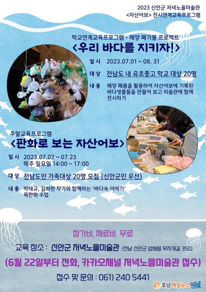Çб³ ¿¬°è ±³À°ÇÁ·Î±×·¥ÀÎ <¿ì¸® ¹Ù´Ù¸¦ ÁöŰÀÚ!>´Â ¿¬¾Èȯ°æÀÇ ¼ÒÁßÇÔÀ» Àϱú¿ö ÁÙ ¹®È¿¹¼ú±³À°»ç¿Í ÇÔ²² ÇØ¾ç ¾²·¹±â¸¦ ÀçȰ¿ëÇÏ¿© ¹Ù´Ù»ý¹°À» ¸¸µå´Â ¼ö¾÷ÀÌ´Ù. 7¿ù 1ÀϺÎÅÍ 8¿ù 31ÀϱîÁö »çÀü ½ÅûÀ¸·Î Âü¿©ÇÒ ¼ö ÀÖÀ¸¸ç, ´ë»óÀº Àڳฦ µÐ °¡Á· ´ë»ó 20¸íÀÌ´Ù. âÀÛµÈ ÀÛǰÀº ¡¶Áö»ê¾îº¸¡·Àü¿¡ ÇÔ²² Àü½ÃµÇ´Â Ưº°ÇÑ ±âȸ°¡ ÁÖ¾îÁø´Ù. ±× ¹Û¿¡µµ ´©±¸³ª Âü¿©ÇÒ ¼ö ÀÖ´Â <¹°°í±â ÇÁ·ÎŸÁÖ-¼®ÆÇÈ Ã¼Çè>µµ ÁغñµÇ¾î ÀÖ´Ù.