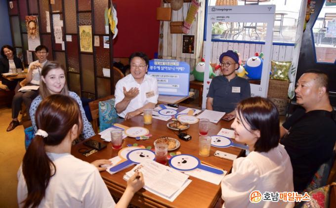 ° ½ÃÀå°ú Âü¼®ÀÚµéÀº ±¤ÁÖ¿¡ Á¤ÂøÇÑ °è±â, ±¤ÁÖ»ìÀÌÀÇ ÁÁÀº Á¡°ú ºÒÆíÇÑ Á¡, ±¤ÁÖÀÇ º¼°Å¸®¿Í ¸Ô°Å¸®, 5¡¤18¹ÎÁÖȿ°ú ±¤ÁÖÁ¤½Å µî ´Ù¾çÇÑ ÁÖÁ¦·Î ´ëȸ¦ ³ª´³´Ù.