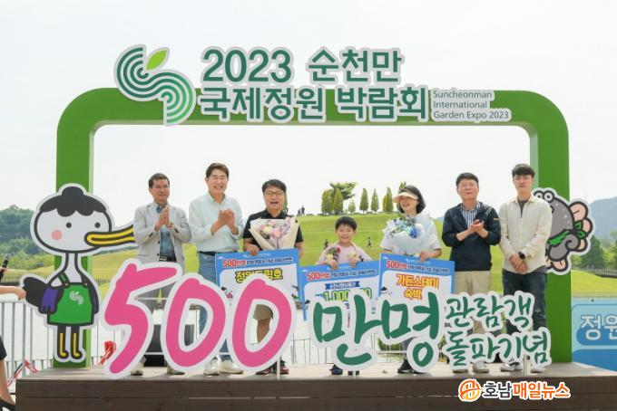 500¸¸ ¹øÂ° ÀÔÀå°´Àº ¼º³²½Ã¿¡¼ °¡Á·¿©ÇàÀ¸·Î ¼øÃµÀ» ¹æ¹®ÇÑ À̰æ¿Á ¾¾ °¡Á·À̾ú´Ù. ³ë°ü±Ô ÀÌ»çÀå(¼øÃµ½ÃÀå)°ú Á¤º´È¸ ¼øÃµ½ÃÀÇÀåÀº 500¸¸ ¹øÂ° ÀÔÀå°´¿¡°Ô ½¯¶û°Ô ¼÷¹Ú±Ç°ú Á¤¿øµå¸²È£ ž½Â±Ç, 100¸¸ ¿øÀÇ ¼øÃµ»ç¶û»óǰ±ÇÀ» Àü´ÞÇß´Ù. ÇØ´ç ¼øÃµ»ç¶û»óǰ±ÇÀº ¾ç¿î½Â ¸í¼º»ç¿ì³ª ´ëÇ¥°¡ 500¸¸ °ü¶÷°´ µ¹ÆÄ¸¦ ÃàÇÏÇϸç ÈÄ¿øÇؿԴÙ.