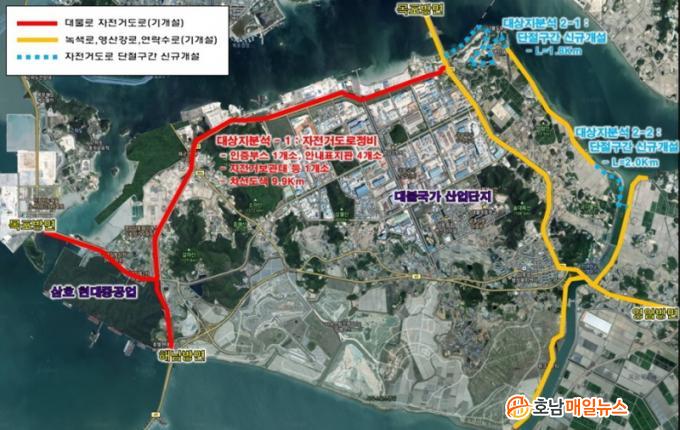 °ø¸ð ¼±Á¤À¸·Î ¿µ¾Ï±ºÀº ÃÑ 6¾ï ¿øÀ» µé¿© Çö´ë»ïÈ£Áß°ø¾÷ Á¤¹®~¿µ»ê°Çϱ¸µÏ~¿µ»êÈ£°ü±¤Áö~¼¼ÇÑ´ëÇб³¸¦ ÀÕ´Â ÃÑ 22.4km ±¸°£À» Á¤ºñÇÑ´Ù. ±¸Ã¼ÀûÀ¸·Î ÀÚÀü°Å±æ 9.9km´Â ¼Õº¸°í, ´ÜÀý±¸°£ 3.8km´Â Àմ´Ù. Á¤ºñ»ç¾÷À¸·Î Â÷¼± µµ»ö, ¾È³»Ç¥ÁöÆÇ ¼³Ä¡, ±æ Æ÷Àå µîÀÌ ³¡³ª¸é ÀÚÀü°Å ÀÌ¿ëÀÚµéÀÇ ºÒÆíÀÌ ÇØ¼ÒµÇ°í ¾ÈÀü»ç°í ¿¹¹æ¿¡µµ µµ¿òÀÌ µÉ Àü¸ÁÀÌ´Ù.