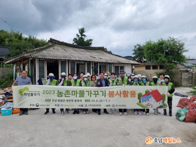 ³óÃ̸¶À» °¡²Ù±â ºÀ»çȰµ¿Àº ³ó¸²Ãà»ê½ÄǰºÎ ÁÖ°ü »ç¾÷¿¡ ¼±Á¤µÈ ´Ù¼ØµÕÁöº¹ÁöÀç´Ü(ÀÌ»çÀå ¼±Ô¿ë)°ú ±¤ÁÖ¿©´ë ½Ç³»°ÇÃàµðÀÚÀÎÇаú ÇлýµéÀÇ Àç´É±âºÎ Ȱµ¿À¸·Î ÁøÇàÇÏ¸ç ¿ÃÇØ·Î 9³â° À̾îÁö°í ÀÖ´Ù.