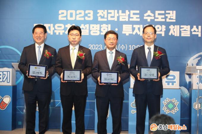 À̳¯ ¼³¸íȸ¿¡´Â ±è¿µ·Ï Àü³²Áö»ç¿Í Á¤ÀÎÈ ±¤¾ç½ÃÀåÀ» ºñ·ÔÇÑ Á¤±â¸í ¿©¼ö½ÃÀå, °Á¾¸¸ ¿µ±¤±º¼ö, ½Å¿ìö ¿Ïµµ±º¼ö, ¼öµµ±Ç ±â¾÷¡¤Çùȸ ´ëÇ¥ 150¿© ¸íÀÌ Âü¼®ÇÑ °¡¿îµ¥ 5°³ ±â¾÷°ú 2Á¶5õ¾ï¿ø ±Ô¸ð ÅõÀÚÇù¾àÀ» ü°áÇß´Ù. À̳¯ Çà»ç´Â ÅõÀÚÇù¾à°ú ÆÛÆ÷¸Õ½º, ÅõÀÚ¼³¸íȸ ¼øÀ¸·Î ÁøÇàµÆ´Ù.