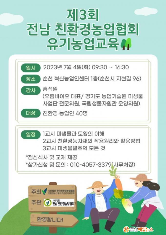 À¯±â³ó¾÷ ±³À°Àº (»ç)Çѱ¹Ä£È¯°æ³ó¾÷Çùȸ¿Í ģȯ°æÀÚÁ¶±ÝÀ§¿øÈ¸°¡ ÁÖÃÖÇϰí (»ç)Àü³²Ä£È¯°æ³ó¾÷Çùȸ¿¡¼ ÁÖ°üÇÏ´Â ±³À°À¸·Î 2022³â¿£ ģȯ°æ °ú¼ö¡¤°úä ³ó°¡ 49¸í(Àü³²´ë ģȯ°æ³ó¾÷¿¬±¸¼Ò 14¸í¡¤´ã¾ç ģȯ°æ³ó¾÷ ±³À°°ü 35¸í)ÀÌ ±³À°À» ¼ö·áÇß´Ù. ¿ÃÇØ´Â ³ó°¡ °ÇÀÇ¿¡ µû¶ó Áö¿ªº° °í¸¥ ±³À° ±âȸ¿Í ÆíÀÇ Á¦°øÀ» À§ÇØ µ¿ºÎ±Ç¿ª°ú ¼ºÎ±Ç¿ª¿¡¼ °¢°¢ 1ȸ¾¿ ¿î¿µÇÑ´Ù.