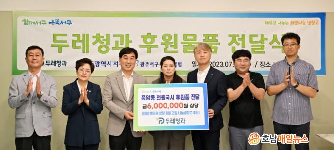 [È£³²¸ÅÀÏ´º½º = ±è±Ý´ö ±âÀÚ] ±èÀ̰ ¼±¸Ã»ÀåÀº 3ÀÏ ¿ÀÈÄ µÎ·¹Ã»°ú(´ëÇ¥ÀÌ»ç ÇѼö¿µ)·ÎºÎÅÍ Ç³¾Ï õ¿ø±¹½Ã ³ª´®³ÃÀå°í¸¦ ÅëÇØ °ü³» ¾î·Á¿î ÀÌ¿ôµé¿¡°Ô Àü´ÞÇÒ 600¸¸¿ø »ó´çÀÇ Á¦Ã¶°úÀÏÀ» ¹Þ°í °¨»çÀÇ ¸¶À½À» ÀüÇß´Ù.