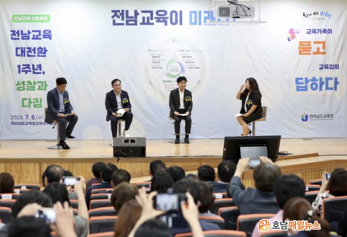 Àü¶ó³²µµ±³À°Ã»(±³À°°¨ ±è´ëÁß)ÀÌ ÁÖ¹ÎÁ÷¼± 4±â ±è´ëÁß ±³À°°¨ ÃëÀÓ 1ÁÖ³âÀ» ¸Â¾Æ 7¿ù 5ÀÏ(¼ö) Àü¶ó³²µµ±³À°Ã»±³À°¿¬±¸Á¤º¸¿ø¿¡¼ ¸¶·ÃÇÑ ¡®Àü³²±³À° ´ëÅä·Ðȸ¡¯ Âü¿©ÀÚµéÀº Àü³²±³À° ´ëÀüȯ Á¤Ã¥ ½ÇÇö °úÁ¤¿¡¼ ±³À°°øµ¿Ã¼µéÀÇ ÀÇ°ß ¼ö·Å°ú ¹Ý¿µÀÌ Áß¿äÇÏ´Ù´Â µ¥ ÇѸñ¼Ò¸®¸¦ ³Â´Ù.