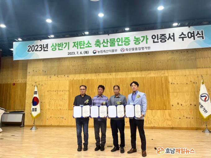À̹ø¿¡ ÀÎÁõ¹ÞÀº ³óÀåµéÀº À¯±â ÀÎÁõ°ú µ¿¹°º¹Áö Ãà»ê³óÀå ÀÎÁõ µî ģȯ°æ °íǰÁú Ãà»ê¹° »ý»êÀ» À§ÇÑ °¢Á¾ ÀÎÁõÀ» ÀÌ¹Ì È¹µæÇÑ ¼±Áø ³ó°¡·Î, À̹ø Àúź¼Ò Ãà»ê¹° ÀÎÁõ±îÁö ´õÇØ Áö¼Ó°¡´ÉÇÑ Ãà»ê»ê¾÷ÀÇ ¼±µÎÁÖÀÚ·Î ÀÎÁ¤¹Þ°Ô µÆ´Ù.