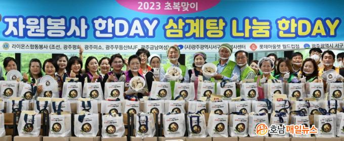 [È£³²¸ÅÀÏ´º½º = ±è±Ý´ö ±âÀÚ] ±¤ÁÖ±¤¿ª½Ã ¼±¸´Â 7ÀÏ ¿ÀÀü ¼±¸Ã» ±¸³»½Ä´ç¿¡¼ (»ç)±¤ÁÖ±¤¿ª½Ã¼±¸ÀÚ¿øºÀ»ç¼¾ÅÍ(ÀÌ»çÀå ÃÖ»óÀÏ), ·Ôµ¥¾Æ¿ï·¿ ¿ùµåÄÅÁ¡ ºÀ»ç´Ü, 5°³ ¶óÀ̿½ºÅ¬·´ µî ÀÚ¿øºÀ»çÀÚ 30¿© ¸í°ú ÇÔ²² Ãʺ¹À» ¾ÕµÎ°í °ü³» Ȧ¸ö ¾î¸£½Å µî Ãë¾à°èÃþ 200¿© ¸í¿¡°Ô Á÷Á¢ ¸¸µç »ï°èÅÁ, Âû¹ä, ¶ó¸é, ±èÄ¡, ±è µîÀ» Àü´ÞÇß´Ù.
