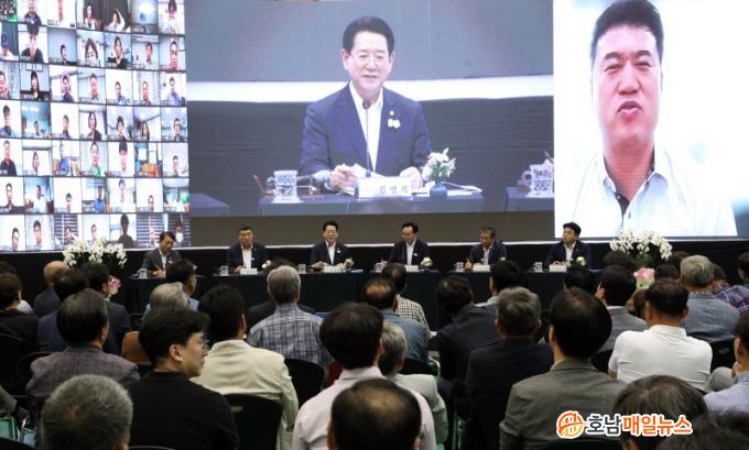 µµ¹Î°úÀÇ ´ëÈ¿¡´Â ±è Áö»ç¸¦ ºñ·ÔÇØ À±º´Å ³ªÁÖ½ÃÀå¿Í ÀÌ»ó¸¸ ³ªÁÖ½ÃÀÇȸ ÀÇÀå, ÃÖ¸í¼ö¡¤ÀÌÀçÅ¡¤±èÈ£Áø µµÀÇ¿ø, ¹Ú»óÈÆ °æÂû¼Àå, ¹Ú¿¬È£ ¼Ò¹æ¼Àå, ÀÌÁÖÈñ µ¿½Å´ëÃÑÀå, ¹ÚÁøÈ£ ÄËÅØ ºÎÃÑÀå, ¼Á¤À± ³ëÀÎȸÀå µî 220¿© ¸íÀÌ ¿Â¡¤¿ÀÇÁ¶óÀÎÀ» ÅëÇØ Âü¿©Çß´Ù.