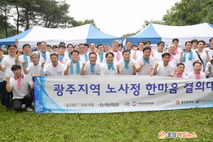 ±¤ÁÖ±¤¿ª½Ã(½ÃÀå °±âÁ¤)¿Í Çѱ¹³ëÃѱ¤ÁÖº»ºÎ, ±¤Áְ濵ÀÚÃÑÇùȸ, ±¤ÁÖÁö¹æ°í¿ë³ëµ¿Ã»´Â 12ÀÏ ¿ÀÈÄ 2½Ã ¹«µî»ê±¹¸³°ø¿ø Áõ½É»ç ÀÔ±¸¿¡¼ ¡®ÇѸ¶À½ °áÀÇ´ëȸ¡¯¸¦ ¿°í ³ë»ç»ó»ýÇù¾àÀ» ü°áÇß´Ù.