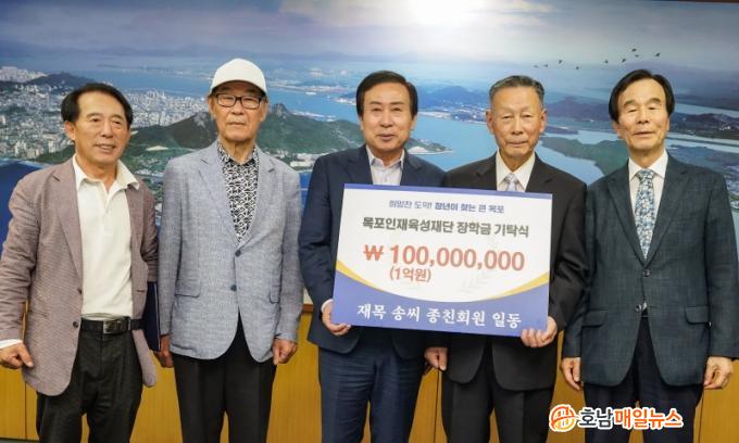 ¹ÚÈ«·ü ¸ñÆ÷½ÃÀåÀº ¡°¸ñÆ÷½Ã ÇлýµéÀÇ ¹àÀº ¹Ì·¡¸¦ À§ÇØ µû¶æÇÑ ¸¶À½À¸·Î ³ª´®À» °áÁ¤ÇØ ÁֽŠ¼Û¾¾ ÀåÇÐȸ ¼Û±ââ ȸÀå´Ô°ú ȸ¿øµé°Ô °¨»çµå¸°´Ù¡±¸ç "±âŹ ¹ÞÀº ÀåÇбÝÀº Áö¿ª»çȸ¸¦ À̲ô´Â ÈǸ¢ÇÑ ÀÎÀç ¾ç¼ºÀ» À§ÇØ ¼ÒÁßÇÏ°Ô »ç¿ëÇϰڴÙ"°í ¸»Çß´Ù.