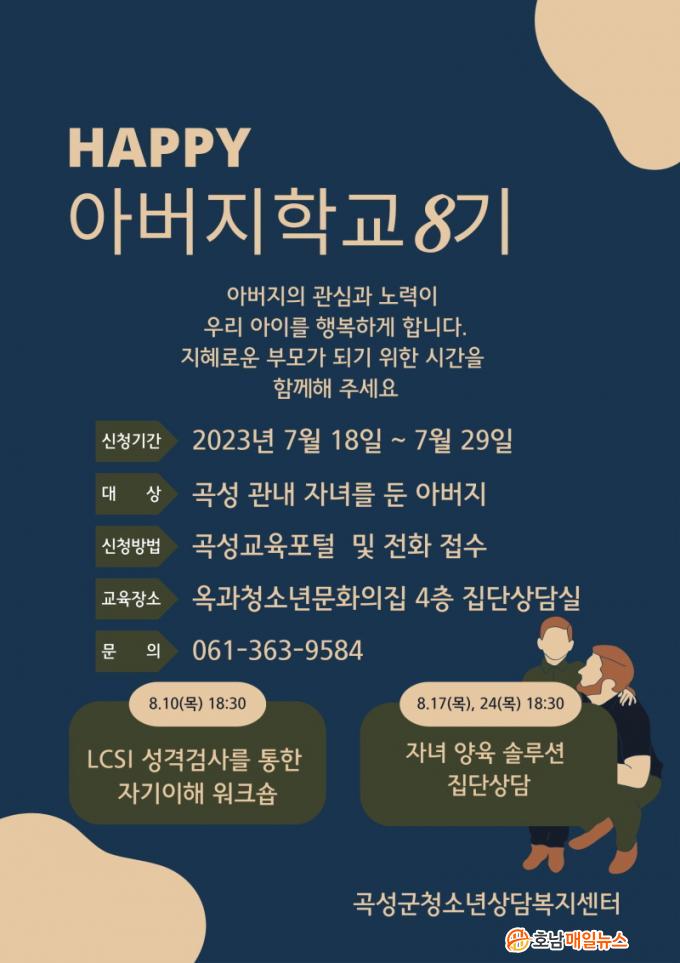 ¡®ÇູÇÑ ¾Æ¹öÁö Çб³¡¯´Â Áö¿ª ³» ÀÚ³àµé µÐ ¾Æ¹öÁö 20¸íÀ» ´ë»óÀ¸·Î ¿î¿µµÈ´Ù. °ÀÇ´Â ¿À´Â 8¿ù 10ÀϺÎÅÍ 24ÀϱîÁö ¸ÅÁÖ ¸ñ¿äÀÏ ¿ÀÈÄ 6½Ã 30ºÐ¿¡ °î¼º±ºÃ»¼Ò³â»ó´ãº¹Áö¼¾ÅÍ 4Ãþ Áý´Ü»ó´ã½Ç¿¡¼ ÁøÇàµÈ´Ù.