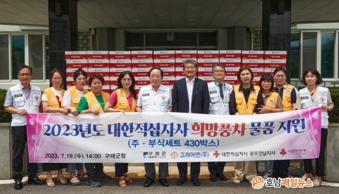 À̳¯ Àü´Þ½Ä¿¡´Â ±è¼øÈ£ ±º¼ö, ´ëÇÑÀû½ÊÀÚ»ç ±¤ÁÖ¡¤Àü³²Áö»ç ÇãÁ¤ ȸÀåÀ» ºñ·ÔÇÑ ½Ç¹«Áø ¹× °ü°èÀÚµéÀÌ Âü¼®Çß´Ù. ´ëÇÑÀû½ÊÀÚ»ç ±¤ÁÖ¡¤Àü³²Áö»ç´Â °í·Á¾Æ¿¬(ÁÖ)ÀÌ ÈÄ¿øÇÑ ÁÖ¡¤ºÎ½Ä ¼¼Æ® 430¹Ú½º¸¦ Àü´ÞÇß°í, Àü´Þ ¹ÞÀº ¹°Ç°Àº °ü³» ¾î·Á¿î Ãë¾à°èÃþ °¡±¸¿¡ Àü´ÞµÆ´Ù.