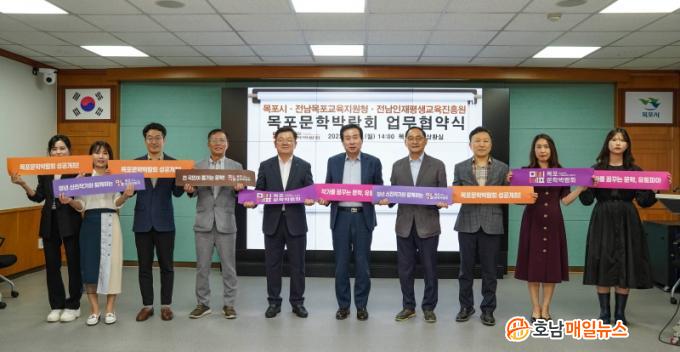 Çù¾à½ÄÀº ¹ÚÈ«·ü ¸ñÆ÷½ÃÀå, Á¤´ë¼º ¸ñÆ÷±³À°Àå, °í¼®±Ô Àü³²ÀÎÀçÆò»ý±³À°ÁøÈï¿øÀå µîÀÌ Âü¼®ÇÑ °¡¿îµ¥ ÁøÇàµÆ´Ù. Àü±¹ À¯ÀÏ ¹®ÇÐÀ» ÁÖÁ¦·Î ÇÑ ¹®Çйڶ÷ȸ°¡ ¿À´Â 9¿ù 14ÀϺÎÅÍ 17ÀϱîÁö ¸ñÆ÷¹®Çаü ¹× ºÏ±³µ¿ ÀÏ¿ø¿¡¼ ¿¸± ¿¹Á¤ÀÎ °¡¿îµ¥ ½Ã´Â µµ³» ÃÊ¡¤Áß¡¤°í Çлý ¹× ¼ºÀε鿡°Ô Àü½Ã¡¤Çà»ç¡¤Ã¼Çè µîÀ» ÅëÇÑ ¹®ÇÐ ±³À°ÀÇ ÀåÀ» Á¦°øÇϰí, ¹®Çйڶ÷ȸ¸¦ Çб³ ¹Û ÇöÀå ±³À° Ȱµ¿ÀÇ ±âȸ·Î »ï±â À§ÇØ À̹ø Çù¾àÀ» ¸¶·ÃÇß´Ù.