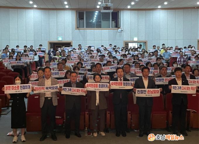 ´ëȸ¿¡ Âü¼®ÇÑ ¼÷¹Ú¾÷ÁÖµéÀº Ä£ÀýÇÑ ¼ºñ½º, û°áÇÑ ¼÷¹Úȯ°æ Á¶¼º, ÇÕ¸®Àû ¼÷¹Ú¿ä±Ý °Ô½Ã µîÀ» ½ÇÃµÇØ Àü³² ¼÷¹Ú¹®È À§»óÀ» ³ôÀ̱â·Î °áÀÇÇß´Ù.