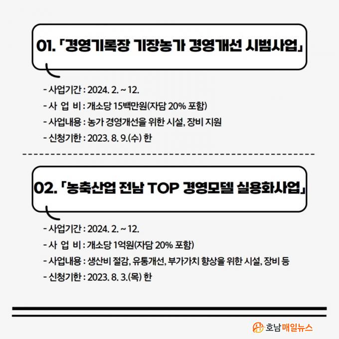 ÀÚ¼¼ÇÑ ³»¿ëÀº ³ó¾÷±â¼ú¼¾ÅÍ È¨ÆäÀÌÁö¸¦ ÅëÇØ È®ÀÎÇÒ ¼ö ÀÖ´Ù. ½Åû ±âÇÑÀº ¡®³óÃà»ê¾÷ Àü³² TOP °æ¿µ¸ðµ¨ ½Ç¿ëÈ »ç¾÷¡¯Àº 8¿ù 3ÀÏ, ¡®°æ¿µ±â·ÏÀå ±âÀå ³ó°¡ °æ¿µ°³¼± Áö¿ø»ç¾÷¡¯Àº 8¿ù 9ÀϷΠȼø±º³ó¾÷±â¼ú¼¾Å͸¦ ÅëÇØ Á¢¼öÇÑ´Ù.
