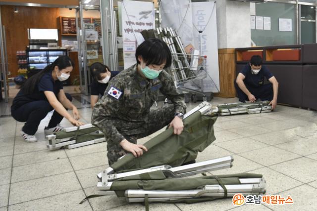À̹ø ÈÆ·ÃÀº Àü½Ã »óȲ¿¡¼ Àǹ«½Ã¼³ÀÌ Á¦ ±â´ÉÀ» »ó½ÇÇßÀ» °æ¿ì¸¦ ´ëºñÇØ ½Å¼Ó¡¤Á¤È®ÇÏ°Ô ¿¹ºñÀǹ«½Ã¼³À» Àü°³Çϰí Àη°ú ¹°ÀÚ ¼Õ½ÇÀ» ÃÖ¼ÒÈÇÏ¿© ÀÇ·á ÇàÀ§¸¦ Áö¼ÓÇÏ´Â °ÍÀ» ¸ñÇ¥·Î ÁøÇàµÇ¾ú´Ù.
