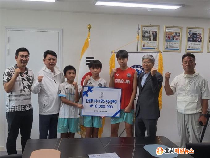 ÇÑÆí, Àü³²Ã౸Çùȸ´Â 3³â° µµ³» ´Ù¹®È °¡Á¤ÀÇ ¼±¼öµé°ú ¿ì¼ö¼±¼öµéÀ» Áö¿øÇÏ°í °Ý·ÁÇϱâ À§ÇØ ½ÅÁ¤½Ä Àü³²Ã౸ÇùȸÀåÀÌ ÀåÇбÝÀ» Á÷Á¢ Ãâ¿¬ÇØ µµ³» Ã౸ ²Þ³ª¹«Çлýµé¿¡°Ô ÀåÇбݰú ÀåÇÐÁõ¼¸¦ Àü´ÞÇϰí ÀÖÀ¸¸ç, ÀåÇÐ±Ý Áö¿ø »ç¾÷ ¿Ü¿¡µµ ¸Å³â °Ü¿ï, Çлý ¼±¼öµéÀÇ ¼±Áø Ã౸¹®È üÇèÀ» À§ÇØ À¯·´ Æ®·¹ÀÌ´×Ä·ÇÁ µî Çлý ¼±¼öµéÀÇ ¼ºÀåÀ» À§ÇØ ´Ù¾çÇÑ Áö¿øÀ» ¾Æ³¢Áö ¾Ê°í ÀÖ´Ù.
