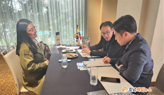 ÇÑÆí, ½ÅÇö°ï Àü³²µµ ±¹Á¦Çù·Â°üÀº ¡°Çؿܸ¶ÄÉÆÃÀÌ ¾î·Á¿î Áß¼Ò±â¾÷ÀÇ ÇØ¿Ü½ÃÀå °³Ã´À» À§ÇØ ¹ÙÀ̾î ÃÊû µî ¼öÃâ»ó´ã ±âȸ¸¦ Á¦°øÇϰí ÀÖ´Ù¡±¸ç ¡°À¯¸Á Áß¼Ò±â¾÷ÀÇ ¼öÃâ È®´ë¸¦ À§ÇØ Áö¼ÓÇØ¼ Áö¿øÇϰڴ١±°í ¸»Çß´Ù.