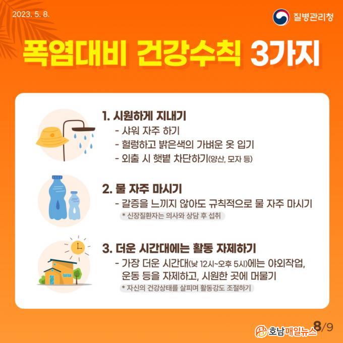Æø¿°À¸·Î ÀÎÇÑ ¿Â¿ÁúȯÀº °Ç° ¼öÄ¢À» ÁöŰ´Â °Í¸¸À¸·Îµµ ¿¹¹æÀÌ °¡´ÉÇÏ¸ç ¡â½Ã¿øÇÏ°Ô Áö³»±â ¡â±ÔÄ¢ÀûÀ¸·Î ÀÚÁÖ ¹° ¸¶½Ã±â ¡âÆø¿°ÁÖÀǺ¸¡¤Æ¯º¸°¡ ¹ß·ÉµÇ¸é À§Çè½Ã°£´ë(³· 12½Ã~¿ÀÈÄ 5½Ã)¿¡´Â ¾ß¿ÜȰµ¿À» ÁÙÀ̱⠡âȯÀÚ ¹ß»ý Áï½Ã ½Ã¿øÇÑ °÷À¸·Î ¿Å±ä ÈÄ ÀÇ·á±â°üÀ¸·Î À̵¿ µî °Ç°¼öÄ¢À» ÁؼöÇÏ´Â °ÍÀÌ Áß¿äÇÏ´Ù.